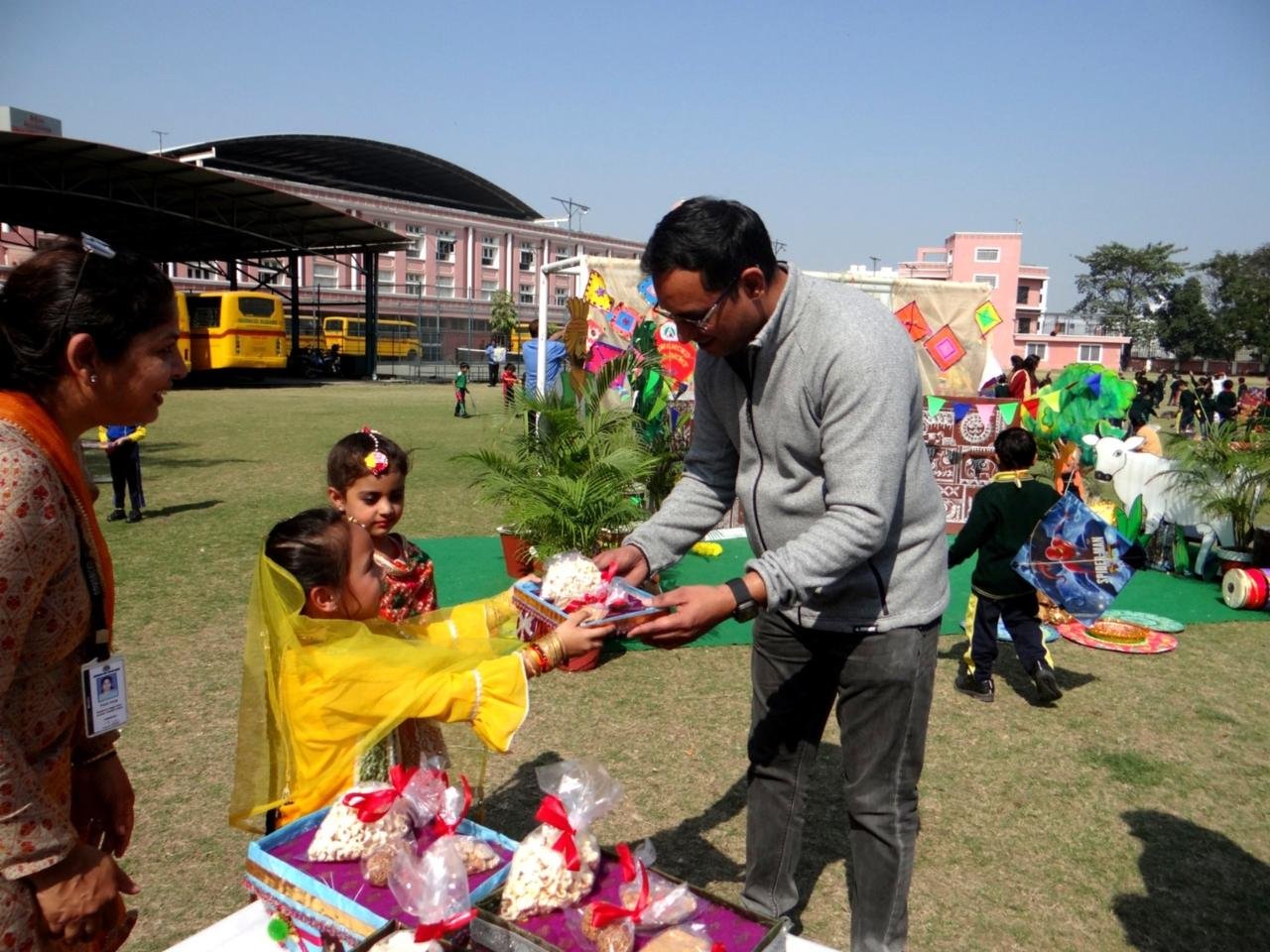 The children enhanced the beauty of the event by wearing traditional attire. The importance of the sweetness of Til–Gud was beautifully explained to the children, along with guidance on the safety precautions to be taken while flying kites. At the end of the event, Til–Gud laddoos and popcorn were distributed to all the children, and the students enjoyed the celebration with great excitement and happiness.